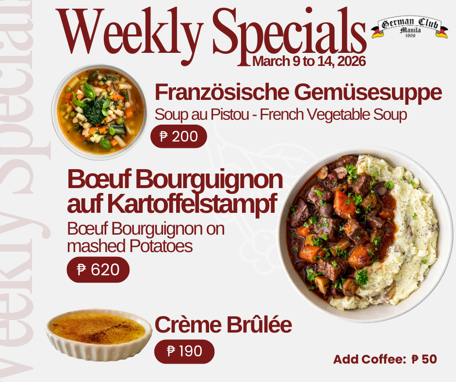 The German Club has been a long-standing membership club and establishment in the Philippines since 1906 mainly to accommodate the German community. Today, it is not just a bar and restaurant but a community where you meet people not just from Germany, but also people of different background & industries.